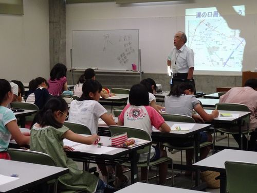 当日は、朝から大気が不安定で午前中は、雨模様となりました。近隣の中学生31人が出席し、「中学生のための郷土理解講座」が開催されました。第一部では、溝口周辺の歴史や文化について、第二部では、大山街道に焦点をあて、資料や写真をもとに話を聞きました。「大山街道はいつ頃からできたのか」の質問がでるなど熱心な話し合いで時間を延長しての講座となりました。